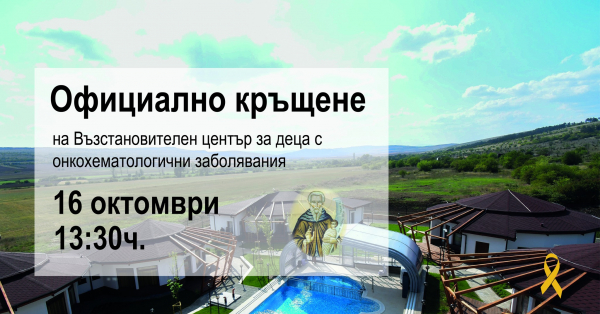 Две години след официалното откриване на Възстановителен център за деца с онкохематологични заболявания, дойде време и свето кръщене на Центъра. Събитието е на 16 октомври, от 13:30 ч.