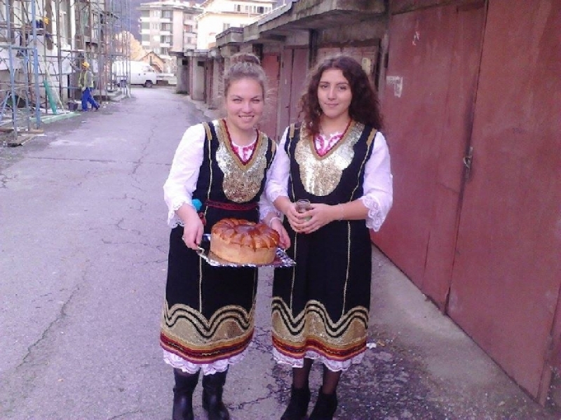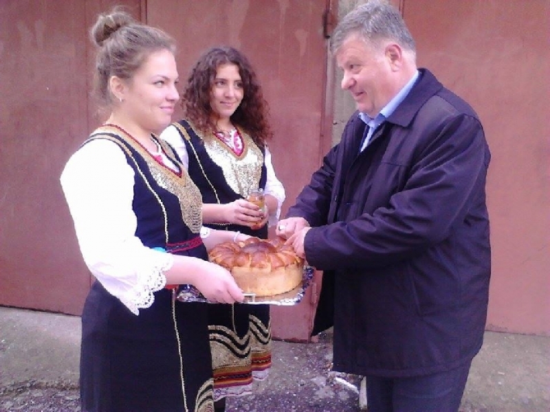 Сградата на бул. Искър № 27, която ще бъде санирана, посрещна екипите на Областна и Общинска администрация, спазвайки народните традиции - от млади момичета в български носии с хляб и мед.
