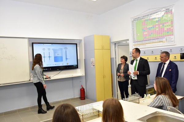 Кметът Калин Каменов, евродепутатът Владимир Уручев и директорът на Профилирана природо-математическа гимназия „Акад. Иван Ценов“ Татяна Василева прерязаха лентата на откриването на 11 интерактивни кабинети и обновени класни стаи, с което стартира и тържественото отбелязване на 48 години от създаването на учебното заведение.
