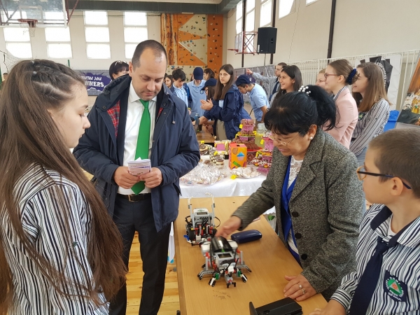 По повод патронния празник на учебното заведение възпитаниците на гимназията представиха ръчно изработени материали на тематични щандове.