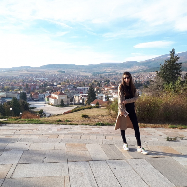 Наблюдавахме отвисоко със сестра ми. Виждаше се почти целият град. Бяхме заобиколени от шарени багри, защото бе есен. Всичко бе пожълтяло или оранжево, а в същото време имаше и зеленина. Докато гледах гледката отново си потвърждавах, колко е красива и богата нашата родина. Природните чудеса, природните богатства, историята те са свещено наследство. Когато посетя Панагюрище усещам и виждам всички тези чудеса.