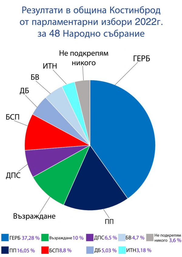 Резултати в община Костинброд от парламентарни избори 2022 г. за 48-то Народно събрание, по данни на РИК-София област, при обработени 100% протоколи.