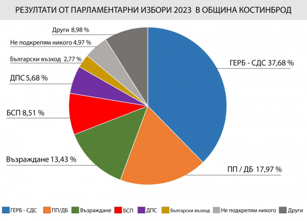 Резултати в община Костинброд от Парламентарни избори 2023, за 49-то Народно събрание по данни на РИК-София област при обработени 100% протоколи.