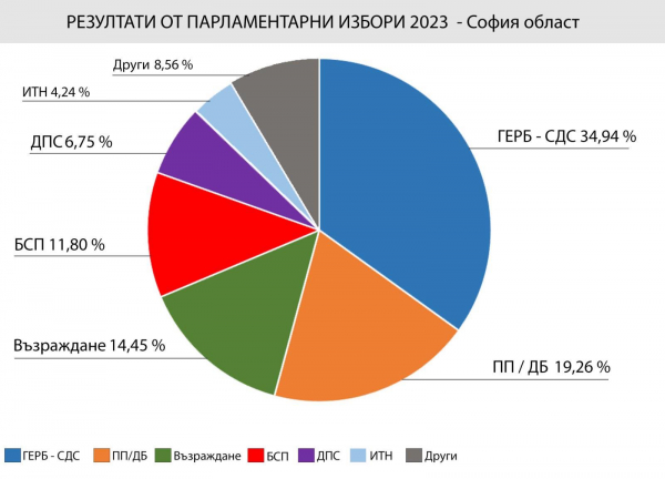 Резултати в София област от Парламентарни избори 2023, за 49-то Народно събрание по данни на РИК-София област при обработени 100% протоколи.