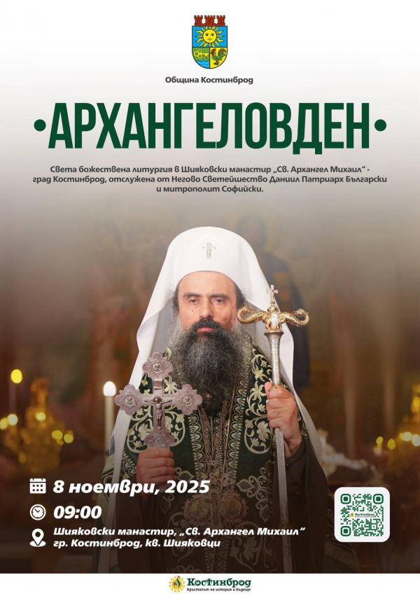 На 8 ноември 2025 г. Костинброд ще посрещне Негово Светейшество Даниил, Патриарх Български и Митрополит Софийски, който ще оглави тържествената божествена литургия за Архангеловден в Шияковския манастир „Св. Архангел Михаил“. Празничното богослужение ще започне в 09:00 часа и ще събере десетки вярващи, дошли да отдадат почит на Архангел Михаил.