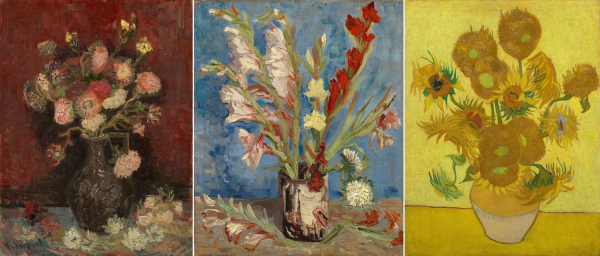 Винсент започва да рисува цветни натюрморти, за да експериментира с цвета. Цветните натюрморти се продават добре по онова време, което е и друга причина да ги рисува. След като Винсент вижда свежите, цветни картини на импресионистите в Париж, той също иска да внесе повече колорит в работата си. Първоначалните му цветни натюрморти имат традиционни цветове, но Винсент изпробва все по-екстремни цветови контрасти.