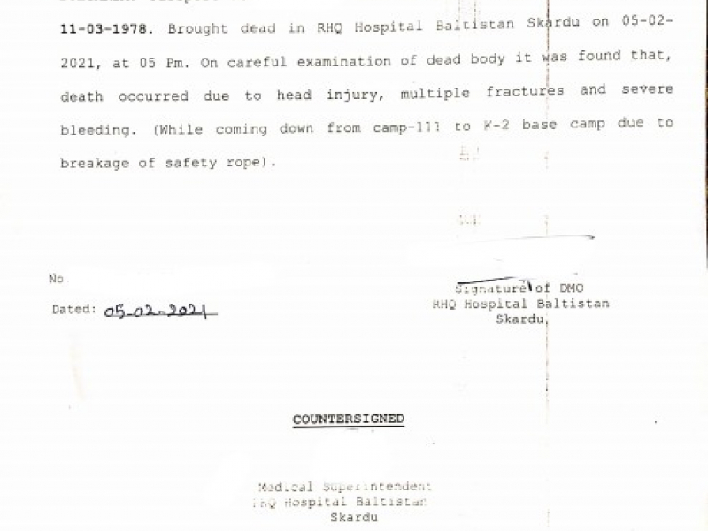 Според алпинисти смъртният акт не бива да бъде приеман еднозначно, тъй като съставянето му се случва часове след инцидента, по информация подадена от експедицията.