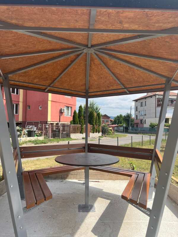Община Костинброд огради цялото пространство с метална ограда, с цел предпазването на децата и постави беседка за техните родители.