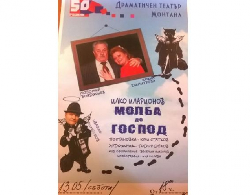 В съботният ден, от 18:00 часа, на сцената на Народно читалище „Съзнание 1907” град Сливница, ще бъде представена и комедийната постановката „Молба до Господ”, под режисурата на Юри Статков и участието на Ирина Димитрова, Любомир Бояджиев и Детелин Кандев.