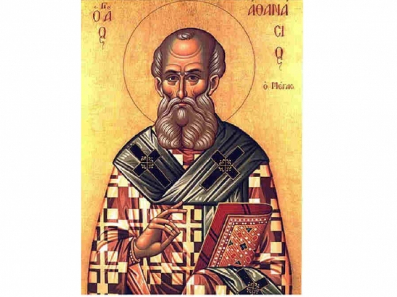 Св. Атанасий е роден през 295 г. в Александрия (Египет) в семейство на бедни християни. Получил добро образование. Участвал в Първия Вселенски събор, където се показал с благодатно озарен ум в защита на вярата против ереста на Арий. На 28-годишна възраст, след смъртта на архиепископ Александър, е ръкоположен за архиерей на негово място в Александрия. Заради вярата преследван в изгнание 15 години. Страдал при императорите Констанций, Юлиан Отстъпник и при Валент, по време на когото известно време се укривал в една гробница. Жителите на Александрия така настоявали да се върне епископът им, че императорът се опасявал от бунт и се съгласил. В старанието си да се омиротвори църквата бил в постоянни спорове с еретиците. Починал в 373 година на 80 години.