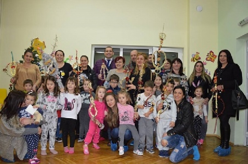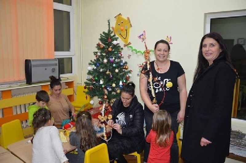 Следващата спирка в празничния ден в Драговищица бе детската градина в селото, където деца и родители изработваха заедно сурвачки, които ще бъдат използвани при представянето на коледната им програма. Под умелото ръководство на техните възпитателки и г-жа Румяна Аврамова – директор на ДГ „Детелина“,  малчуганите накичваха с пуканки и сушени плодове дряновите клонки. Гостите поздравиха децата и родителите и разгледаха новообзаведеното детско заведение, което предоставя отлични условия за развитие, забавление и отдих на най-малките жители на Драговищица.