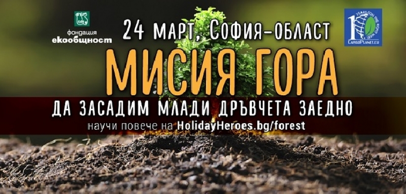 На 24 март, събота, Holiday Heroes, фондация „ЕкоОбщност“ и българската транспортна фирма CargoPlanet се обединяват в името на българското с вълнуващото събитие „Мисия гора“. Празничните герои са подготвили една приказна акция със спортно-състезателен елемент, в която предварително записали се корпоративни отбори ще садят дръвчета близо до София. За офисните хора ще има копаене и засаждане на много нов живот и удоволствието всеки да остави една красива частица от себе си в природата.