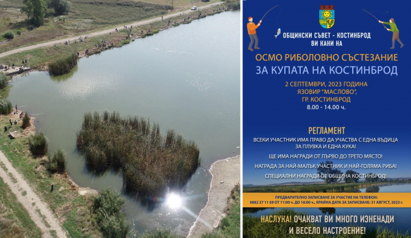 Тазгодишното риболовно състезание за „Купата на Костинброд“ ще се проведе на 2 септември /събота/, на язовир „Маслово“. По традиция, малки и големи риболовци ще премерят сили в атрактивната надпревара и ще се борят за три призови награди, както и отличие за най-малък участник и най-голяма уловена риба. Участниците ще получат и специални награди от Община Костинброд,