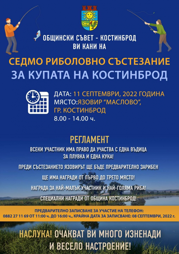 На 11 септември /неделя/ ще се проведе тазгодишното риболовно състезание за „Купата на Костинброд“. По традиция, малки и големи риболовци ще премерят сили на язовир „Маслово“. Началният час е 08.00 ч., като язовирът ще бъде предварително зарибен.