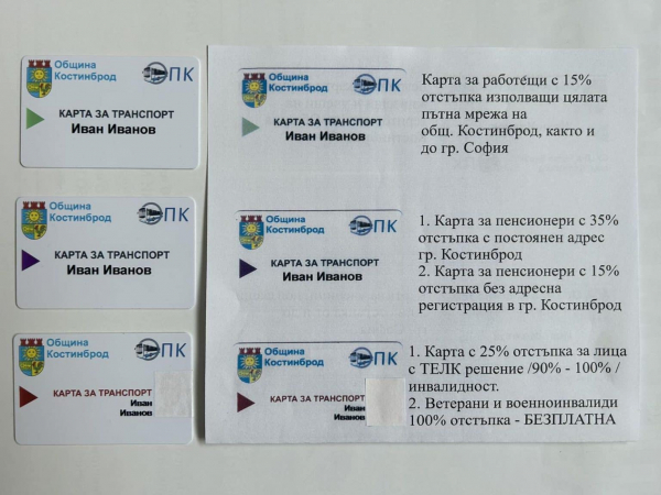 Всички желаещи жители и гости на община Костинброд могат да ползват карти за общинския транспорт, издадени от „Общински превози Костинброд“ ООД, които предоставят отстъпки.