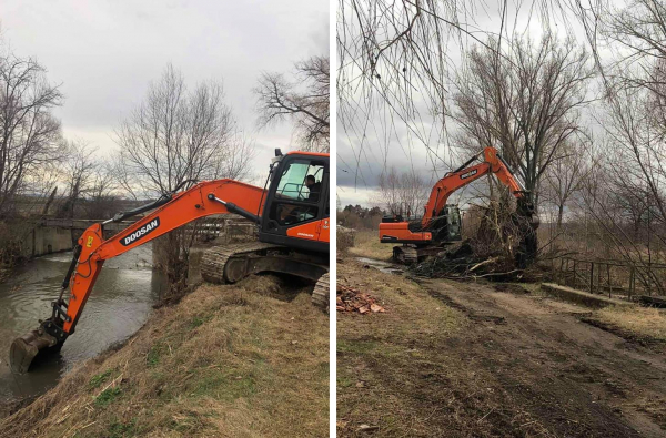 Продължава чистенето на реките в град Костинброд. Багери чистят коритото на река Блато от кв. „Шияковци“ към Първи район в града.