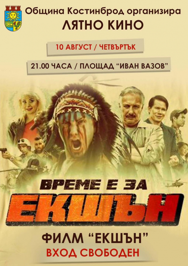 Прожекцията на филма „Екшън“ от лятното кино в Костинброд ще бъде в големия салон на НЧ „Иван Вазов 1947“, информират от Общината. Началният час е 21.00 ч. Входът е свободен.