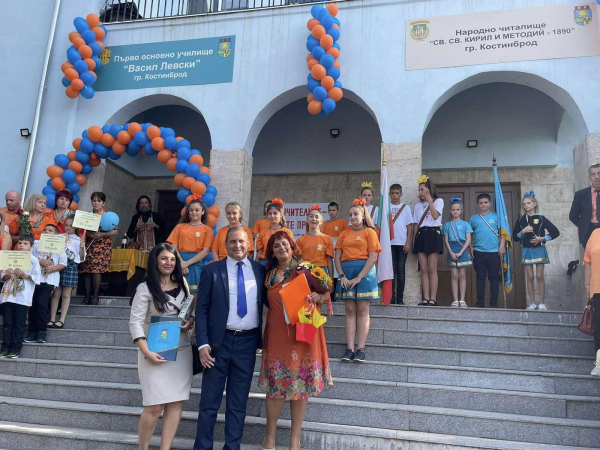 На 15 септември, първият училищен звънец удари във всички образователни институции в община Костинброд. Всяко училище имаше свои официални гости, дошли да уважат първокласниците, техните класни ръководители и всички учители. Тази година Общината подари на всички първокласници Книжка „Празник на буквите – Великите българи“. Инициативата за книжката е на кампанията „Живей чисто“ към Местната комисия за борба с противообществени прояви на малолетни и непълнолетни.