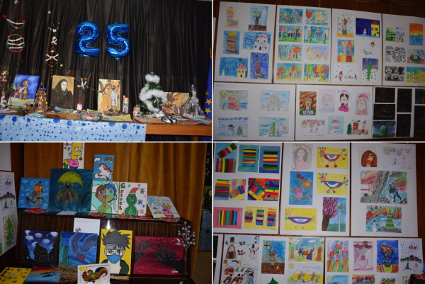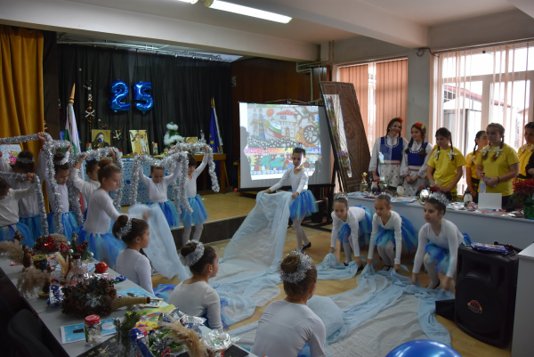 Богата и емоционална програма съпътстваше откриването на изложбата. Изявиха се мажоретките от училището, а изпълнения на зимни песнички подготвиха присъстващите за предстоящите празници. Седмокласниците изпълниха по изключително внушителен начин стихотворението „Художникът“. Презентация с кадри от всички изложби до момента от последните 25 г. пренесе аудиторията назад в годините.
