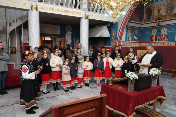 Преди лазарките да изпълнят любимия си обичай, заедно с местни и гости посетиха храм „Св. Николай Чудотворец“ – град Костинброд, в който се отслужи празнична литургия и водосвет за здраве от отец Крум.