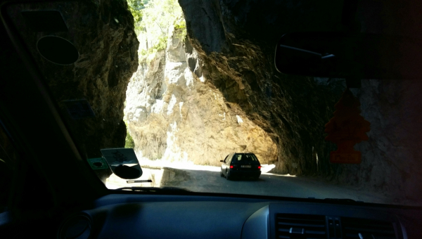 Ние обаче нямахме време за размотаване - трябваше да хванем последната група, която щеше да влезе в гърлото на дявола, намиращо се съвсем близо до сегашната ни локация. Мисля, че вече се досетихте за коя пещера точно става въпрос. Точно така, ще си позволя дори да кажа - нейно величество сред пещерите в България - Дяволското гърло. Извадихме късмет - паркирахме, а групата тъкмо се подготвяше да влиза. Бързо обаче искам да вметна една препоръка - ако имате желание и сте изпуснали поредната група, влязла в пещерата, което се случва на всеки кръгъл час, бихте могли да изпитате адреналина на Алпийския тролей. Той представлява въже с макара и масивен алпинистки колан. Спускате се отвисоко надолу към края на тролея за около минута, движейки се наистина скорострелно. Видяхме табелата, че едно спускане струва 2 лева. Ние не успяхме да го опитаме, но пък ето още един повод да се върнем по тези места.