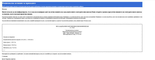 Фалшиви имейли за грешка при изчисляването на осигурителната вноска за пенсия се разпространяват отново в интернет. Към писмото е приложен „чек за надплатени пенсионни и осигурителни вноски“ с текст, който приканва да се кликне върху линк, за да бъдат възстановени надвнесените суми. Този линк съдържа зловреден код и при отварянето му, компютърът на получателя може да бъде заразен с вирус, който да открадне лични и финансови данни.