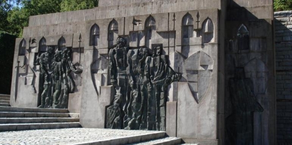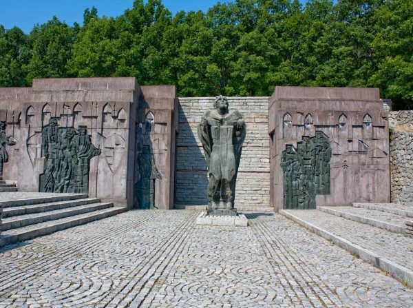 Вървя по алеята, затаил дъх, и пред мен се открива величествена гледка: бронзовият паметник на цар Самуил - изразителна, величествена фигура в цял ръст, но с превити колене. Владетелят - прекършен не от поражението, а от болката, която ще го убие, по своите осакатени сподвижници. Плътно до него са изобразени войниците му - едновременно трагични и величави.