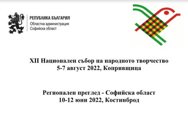 Регионалният преглед на Софийска област за Националния събор на народното творчество – Копривщица 2022 ще се проведе в град Костинброд от 10 до 12 юни 2022 г.