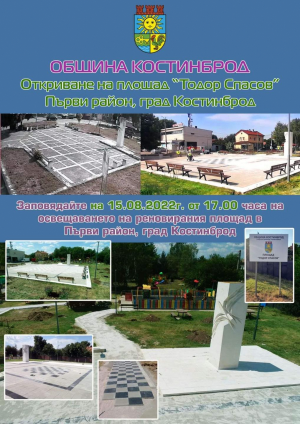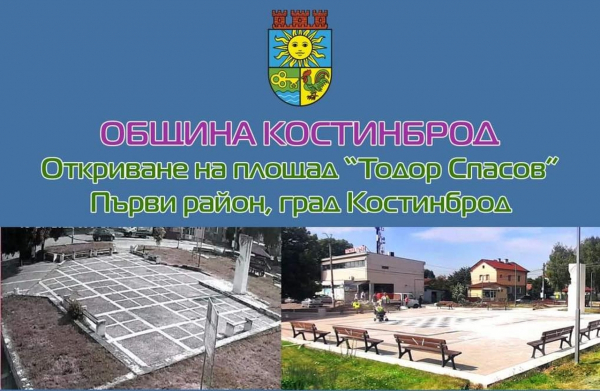 Община Костинброд организира официална церемония по откриването на реновирания площад „Тодор Спасов“, в Първи район, в Костинброд. Церемонията ще се състои на 15 август, от 17.00 ч.