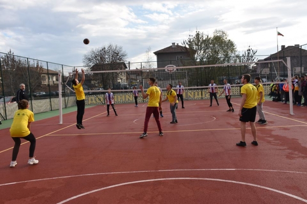 Смесени отбори от 8-ми до 10-ти клас и от 11-ти до 12-ти клас на костинбродските ПГВМСС „Свети Георги Победоносец“ и СУ „Д-р Петър Берон“ премериха сили във волейболната игра, а съдийството бе поверено на Марио Соколов - главен съдия от Българска федерация по волейбол.