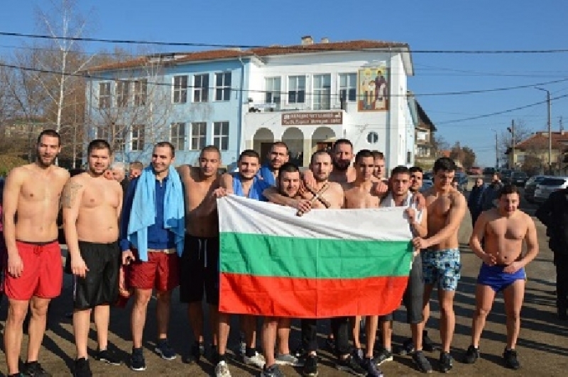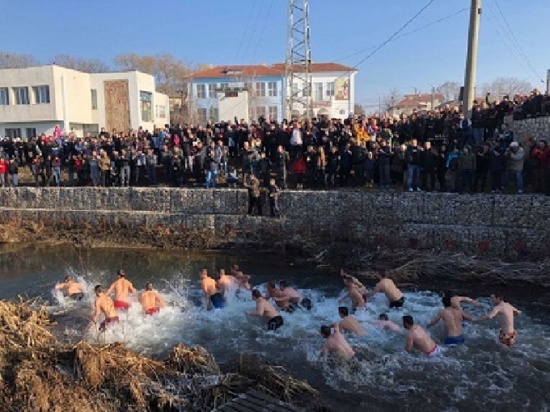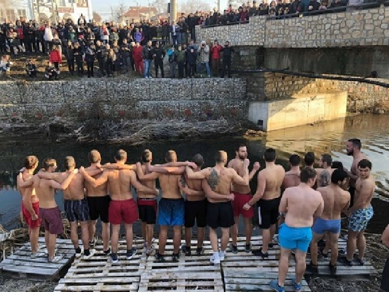 Десетки млади мъже скочиха в студените води на реката, за да бъдат здрави и честити през годината, както гласят народните поверия.