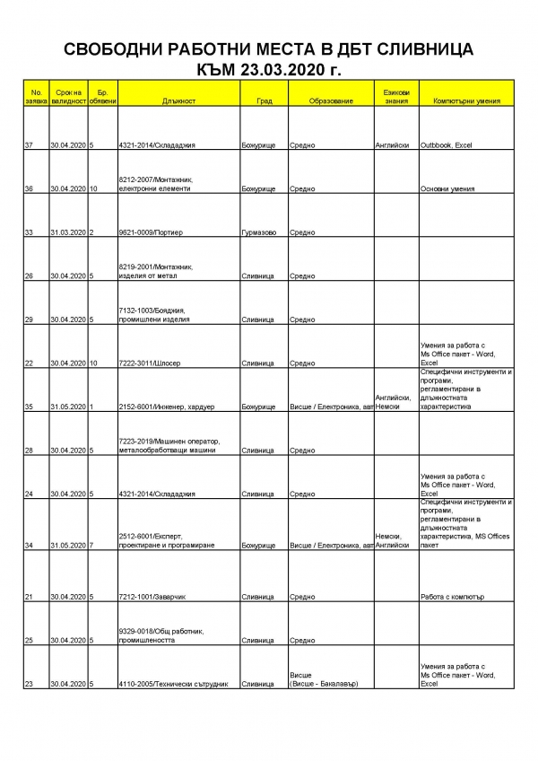 Свободни работни места в ДБТ Сливница към 23.03.2020 г. 23.03.2020 11:56:00 1864 преглеждания Отворени позиции има в Божурище, Драгоман, Гурмазово, Голяновци, Сливница, Костинброд Вижте свободните работни места в ДБТ Сливница към 23.03.2020г.: Снимка: freepik EspressoNews Тагове ДБТ Сливница Сливница Божурище Костинброд Голяновци Гурмазово Драгоман работа обяви