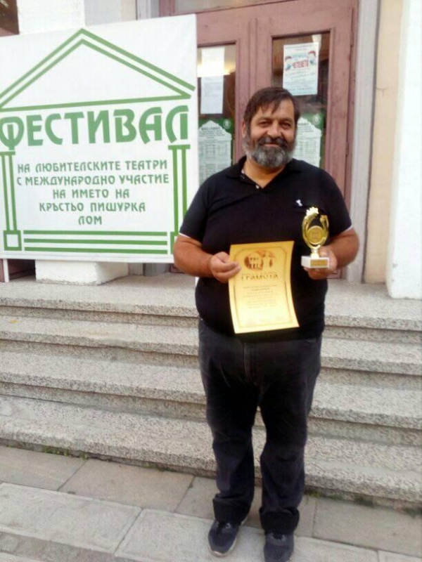 Високото отличие е присъдено за ролята на поп Кръстъо в спектакъла „Великденско вино“ от Констатнтин Илиев на XII-то издание на международния фестивал на любителските театри на името на Кръстьо Пишурка, който традиционно се провежда в Лом.