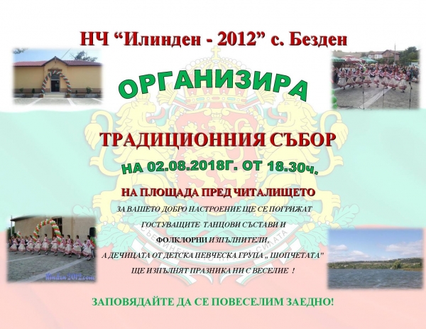 С концерт-тържество село Безден ще отбележи своя празник. Традиционният събор на селото ще се проведе на 2 авгус, на площада пред НЧ „Илинден – 2012“.
