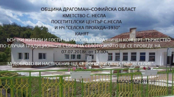 С концерт-тържество село Несла ще отбележи своя празник. Традиционният събор на селото ще се проведе на 7 юли, когато Православната църква почита Света великомъченица Неделя-Кириакия или Голяма света Неделя. Кметство Несла, Посетителски център Несла и НЧ "Селска пробуда - 1930" са организатори на празненството.