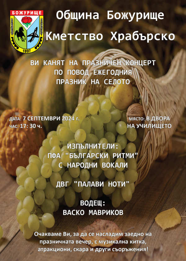 Община Божурище и Кметство Храбърско канят всички жители и гости да се присъединят към празника и да се насладят на музика, танци и добро настроение в сърцето на селото.