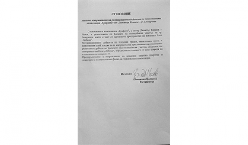 Становище във връзка с реставрационните дейности на стенописната композиция "Графити" на Димитър Казаков - Нерон