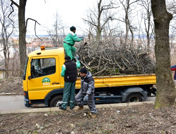 Събраното количество отпадъци се извозва от екипи на БКС, които се включиха и при кастренето на дърветата.