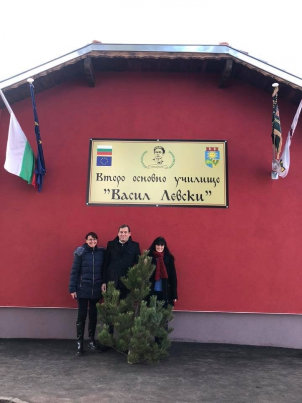 В ОУ ”Отец Паисий” в с. Петърч, Младенов поднесе Коледно дръвче заедно с кмета на селото Борислав Борисов.