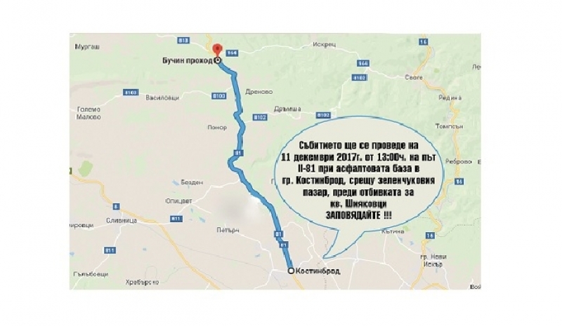 Събитието ще се проведе на 11 декември от 13:00 ч., на път II-81 при асфалтовата база в гр. Костинброд (срещу зеленчуковия пазар преди отбивката за кв. „Шияковци“).