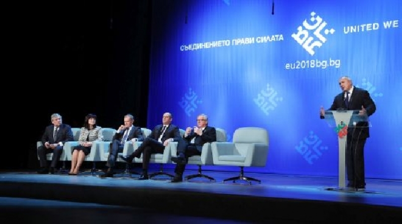 Жан-Клод Юнкер наблегна на предстоящите редица знакови инициативи за бъдещето на ЕС, с които съвпада Българското председателство. „Вашето място е в Европа, в еврото и ние си сътрудничим с вас по този въпрос. Комисията е на страната на България“, заяви Юнкет.
