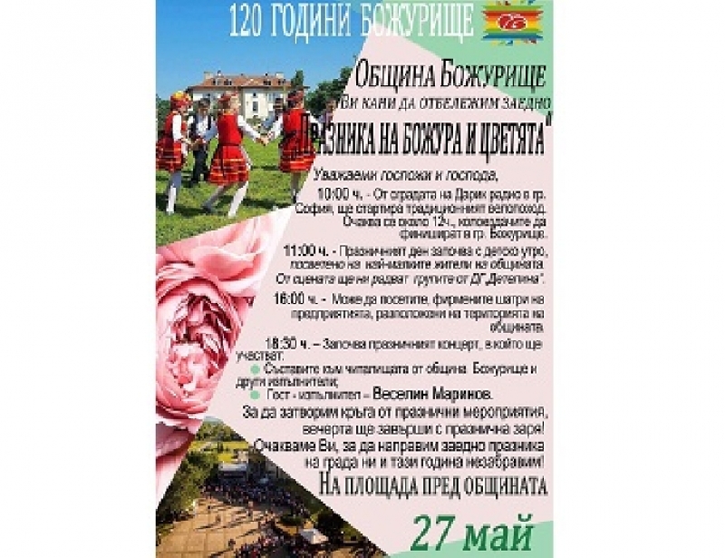 На 27 май 2017 г. (събота) община Божурище ще чества своя „Празник на божура и цветята“.