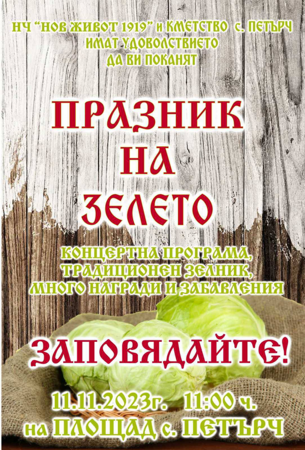 С вкусни гозби и богата програма Петърч ще посрещне своите гости за тазгодишното издание на „Празник на зелето“. Кулинарното събитие ще се проведе на 11 ноември (събота) на площада в селото и ще започне в 11.00 ч.
