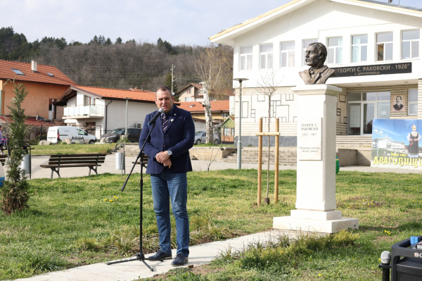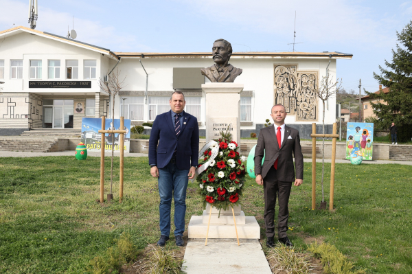 В приветственото си слово, заместник-кметът Александър Ненов изрази признанието и благодарността си към всички присъстващи за указания акт на уважение и почит към един от героите на България. Той сподели за пътя на вдъхновението по време на изграждането на паметника и искреното си желание и потребност да остави нещо от себе си в родното си място, избирайки именно лика на Раковски, заради читалището, което носи неговото име и величието в недългия му житейски път, дало надежда за бленуваната българска свобода. Александър Ненов призова историята да бъде помнена и почитана с гордост, и предавана с чест, защото народът ни е славен, благодарение на всички онези знайни и незнайни български революционери, герои и безстрашни личности, дали живота си за свободна и независима България.