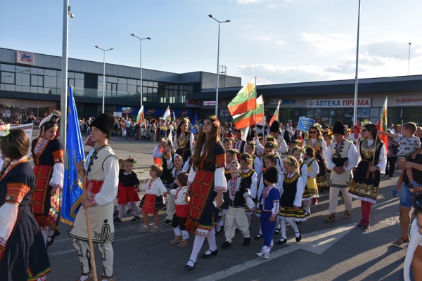 Вечерта на 14 септември започна с шествието на 10 танцови формации, които украсиха ул. „Славянска” и ул. „Охрид“ в града с пъстротата на носиите си от всички етнографски области.