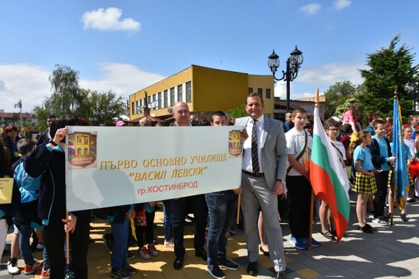 По традиция пред Общинска администрация-Костинброд се събраха всички училища от града. От ул. „Охрид” 1 потегли празничното шествие към реновирания централен градски площад „Иван Вазов”. В ученическото шествие се включиха възпитаници и техните ръководители от Първо ОУ „Васил Левски”, Второ ОУ „Васил Левски”, СУ „Д-р Петър Берон”, ПГВМСС „Св. Георги Победоносец”, кметът на община Костинброд Трайко Младенов, председателят на ОбС-Костинброд д-р Атанас Тенев, заместник-кметът на община Костинброд Александър Ненов, служители на Общинска администрация, директори и служители на центровете - ДЦРДУ, ЦОП „Промяна“, директори на училища, учители, родители, деца и жители от община Костинброд.