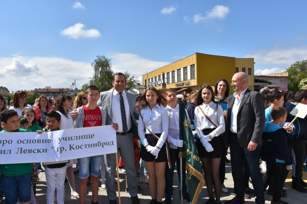 На сцена на централния градски площад „Иван Вазов”, Трайко Младенов поздрави всички присъстващи и подчерта няколко важни факти за образованието в община Костинброд. Факти като миналогодишния проект за енергийна ефективност на сградата на Първо ОУ „Васил Левски”, цялостната реконструкция на Второ ОУ „Васил Левски“, основният ремонт на сградата на ПГВМСС „Св.Георги Победоносец” и спечелените награди на общината в сферата на образованието.