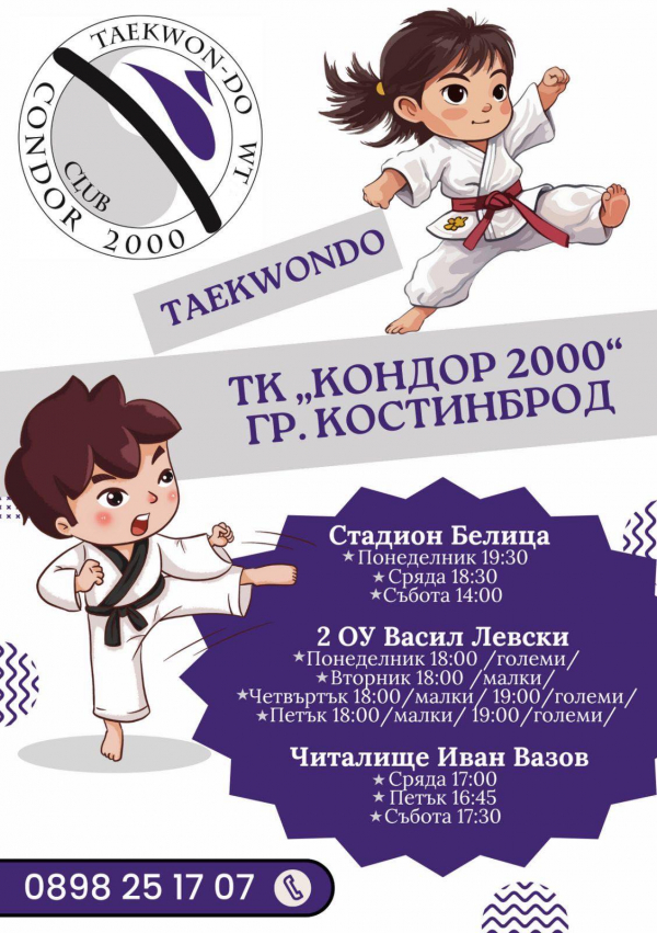 Таекуондо клуб „Кондор 2000“ (Костинброд) предоставя възможност на желаещи от всички възрасти да се запознаят и да се посветят на бойното изкуство. Тренировките се провеждат на три локации в града, като програмата е съобразена с различните възрастови групи: