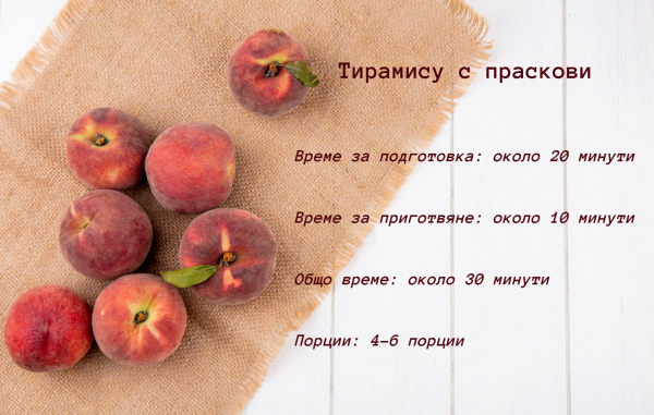 Представяме ви една рецепта за Тирамису с праскови – уникален десерт, който ще ви днесе истинска наслада. Необходимите съставки са лесни за намиране, а приготвянето му е лесно дори и за начинаещи кулинари.