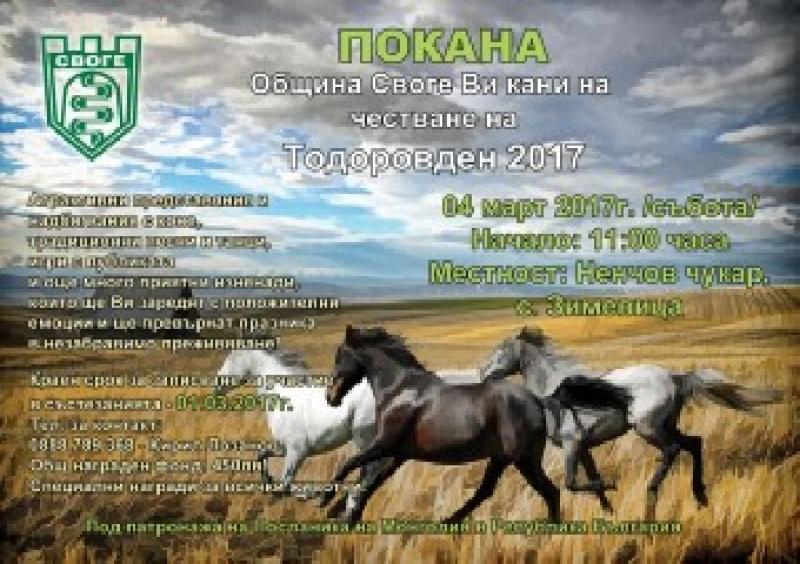 В програмата на известния под народното име "конски Великден", празник са включени и неизменните за традицията надбягвания с коне и магарета - кушии, като желаещите да участват в тях трябва да заявят своето желание пред организаторите в срок до 01.03.2017 г., става ясно от покана публикувана на сайта на община Своге.